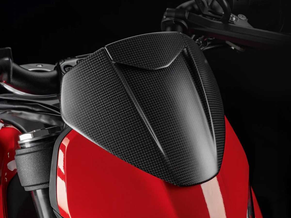 If you want to enhance the appearance of your Ducati Hypermotard 950, consider getting this high-quality extended screen made of matte-finish carbon fibre.