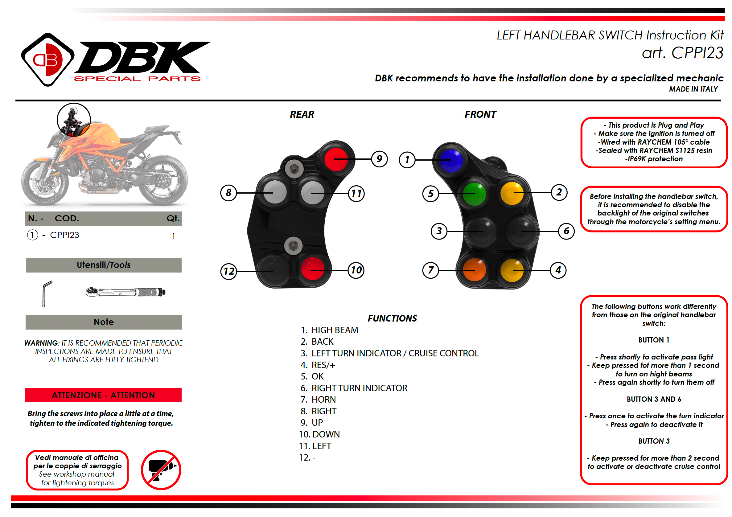 DBK KTM 1290 / 1390 Super Duke / Adventure / GT Left Handlebar Control Switch OEM