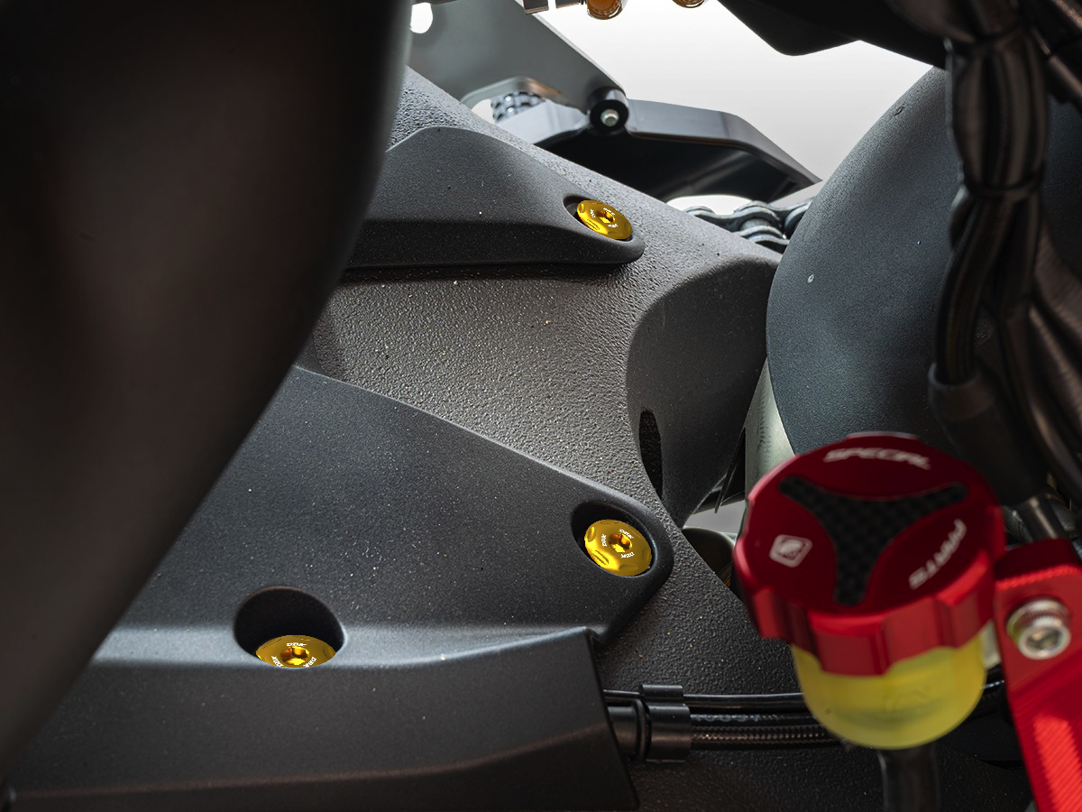 These Ducabike rear hugger screws for the Ducati Panigale V2/S 2025+ are crafted to enhance the aesthetics of your stunning Ducati Panigale V2 from the 2025 model year onward.