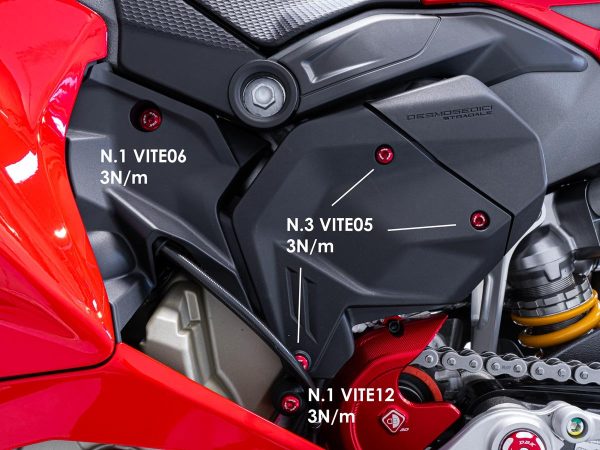 The Ducabike LHS under tank panel screw kit X5 for the Ducati Panigale V4/S 2025+ is crafted to enhance the aesthetics of your stunning Ducati Panigale V4 from the 2025 model year onward.