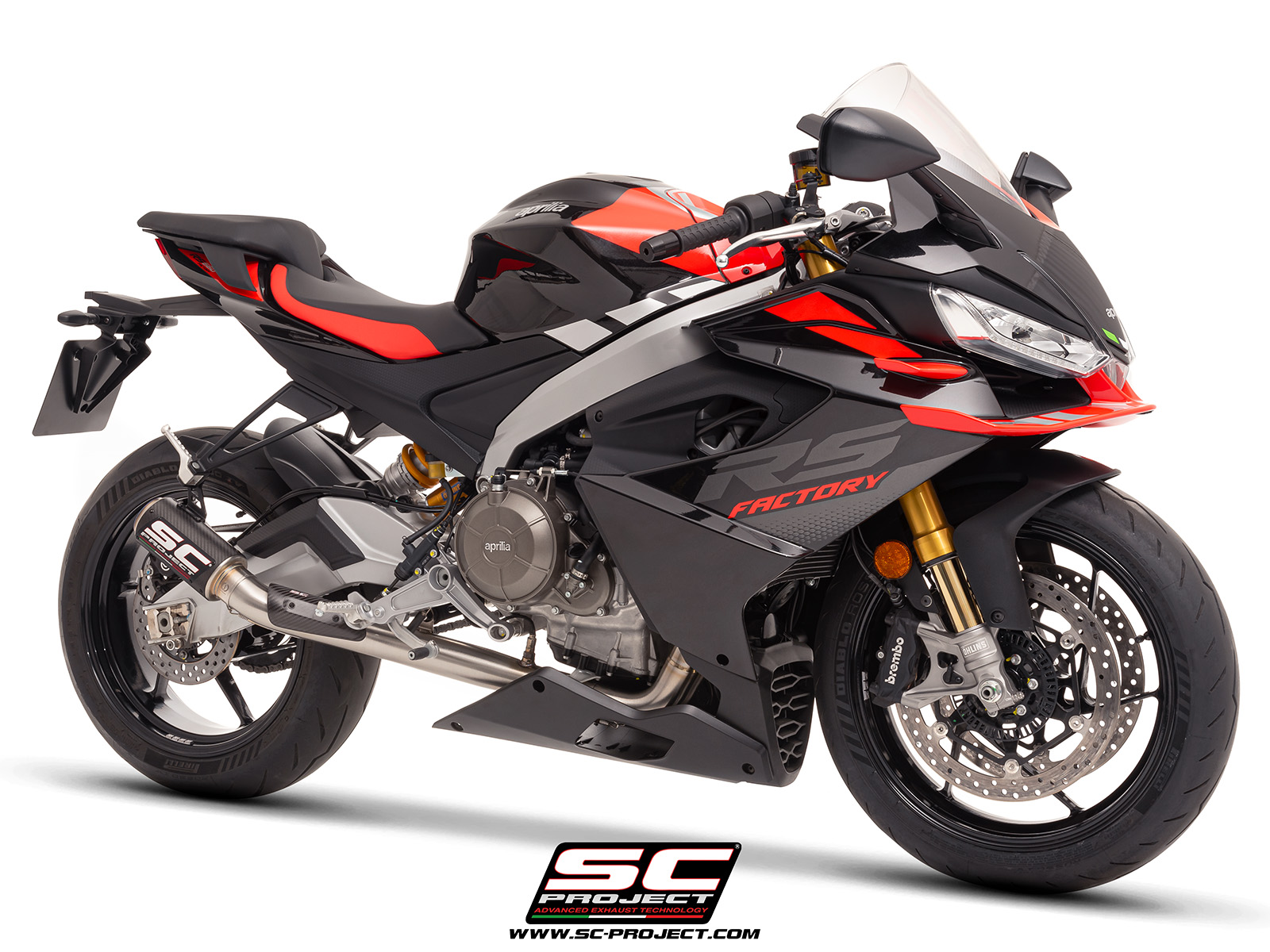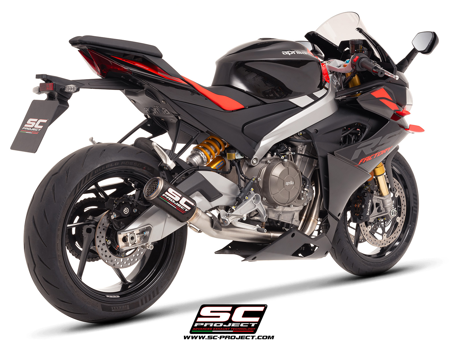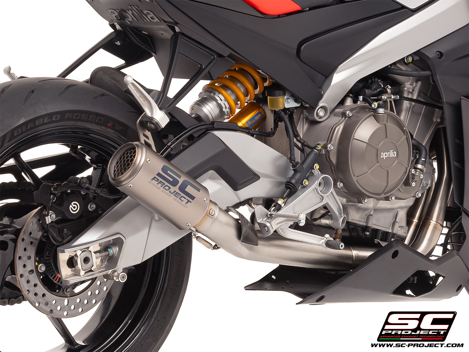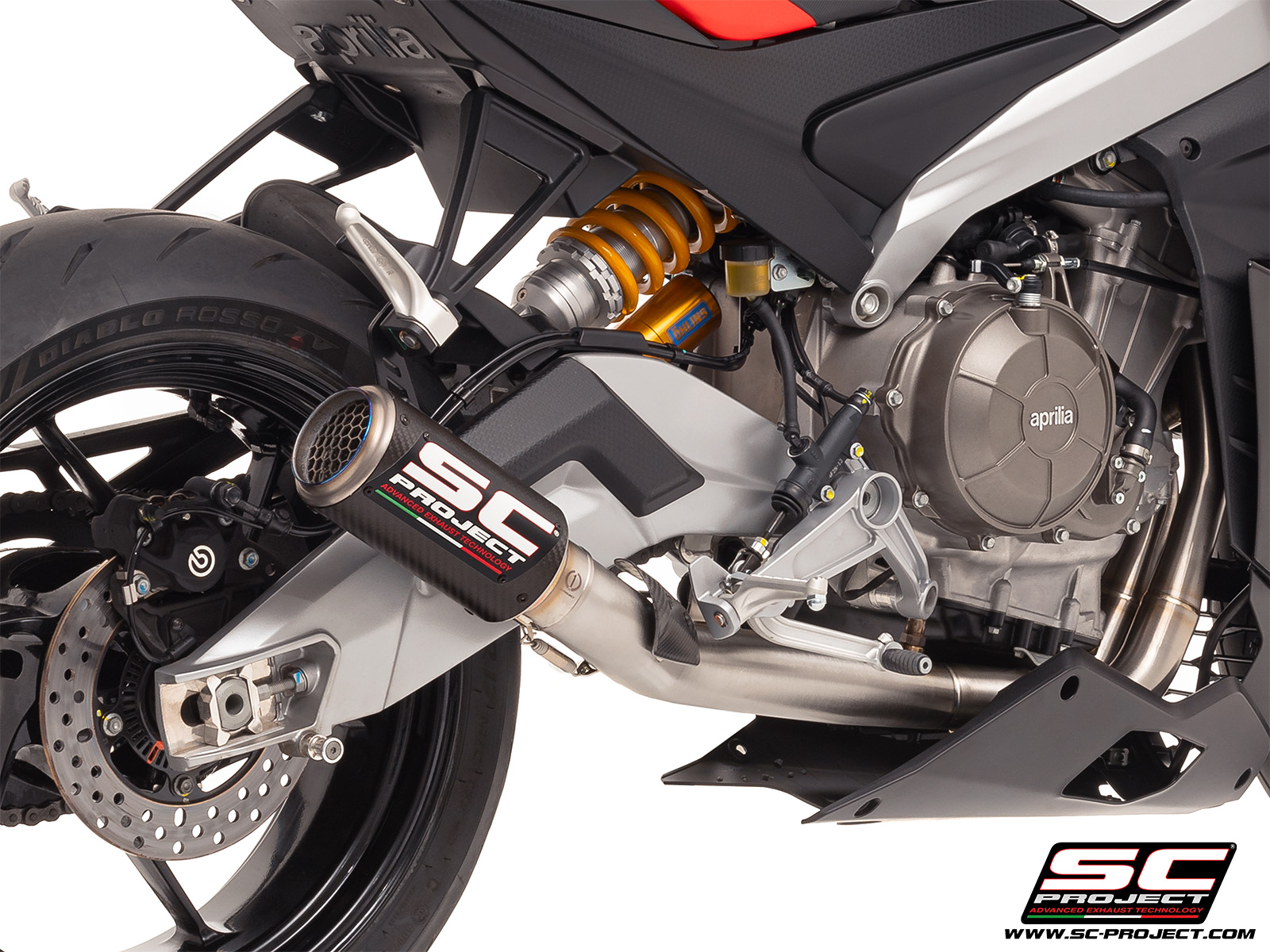 Have your Aprilia RSV4 look and sound as it should, straight from the factory, with this beautifully designed SC Project exhaust.