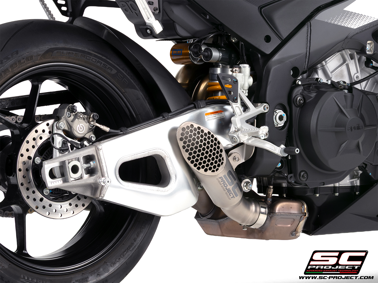 Have your Aprilia RSV4 look and sound as it should, straight from the factory, with this beautifully designed SC Project exhaust.