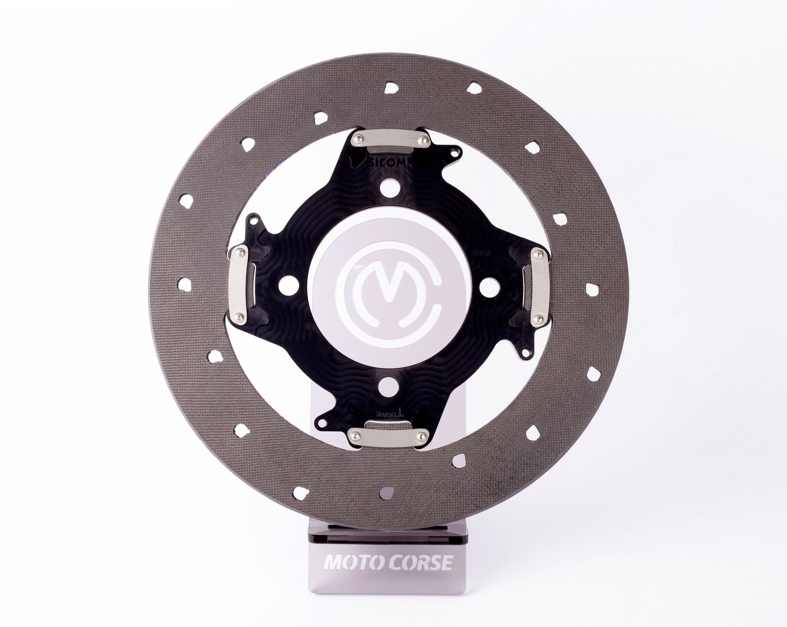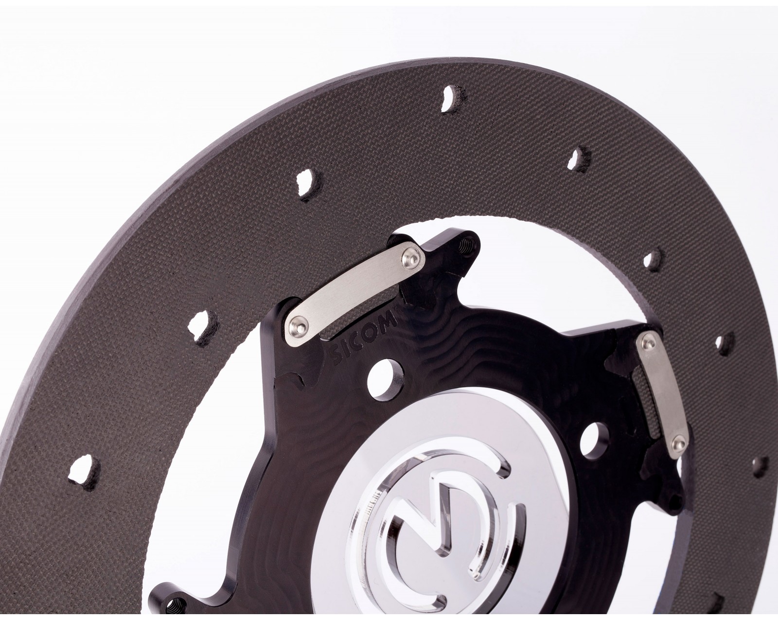 The SICOM rear disc is supplied complete with dedicated brake pads (high-performance sintered).